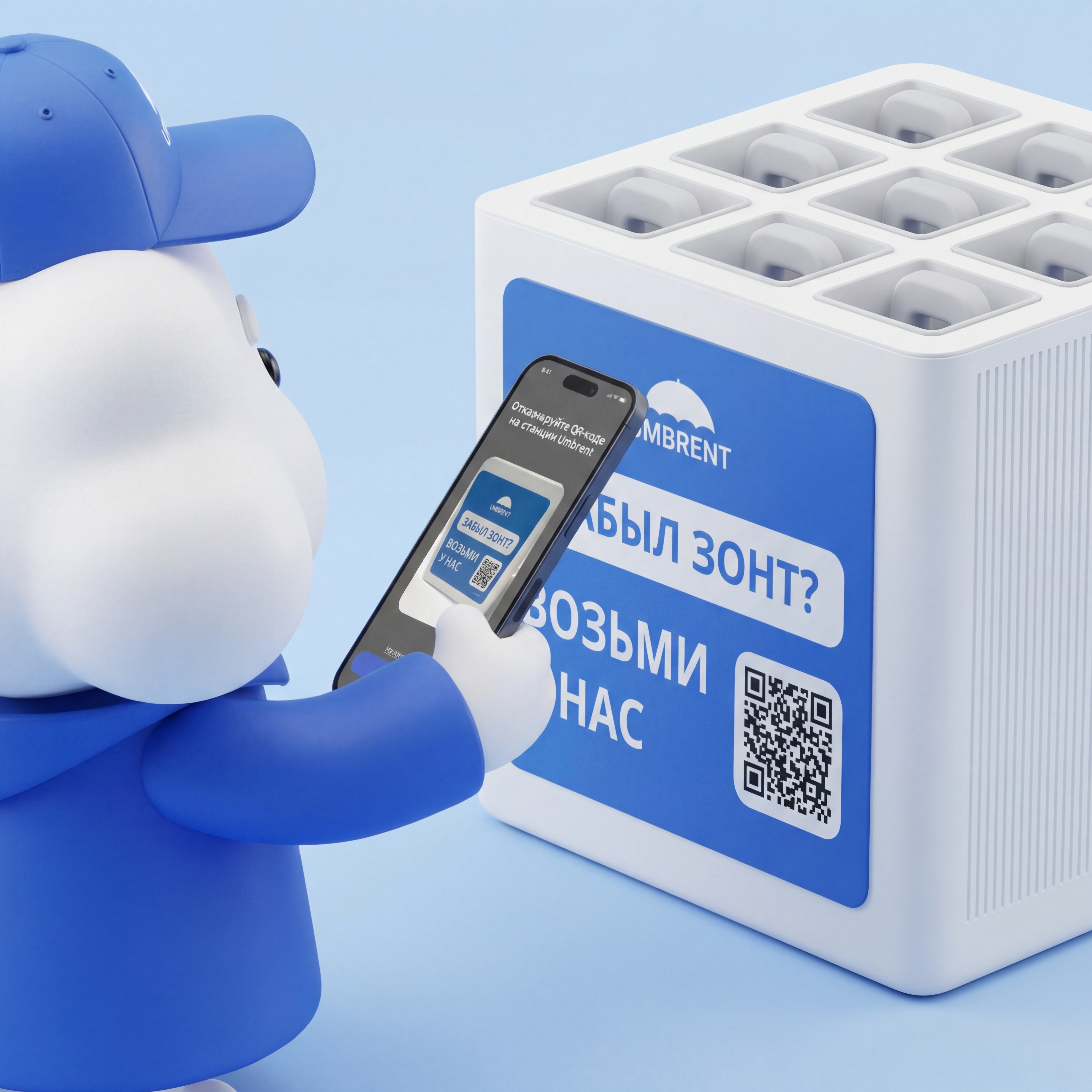 Как взять зонт? Зарегистрируйтесь в приложении Umbrent и привяжите банковскую карту или СБП.После этого вы сможете взять зонт на любой станции сервиса.